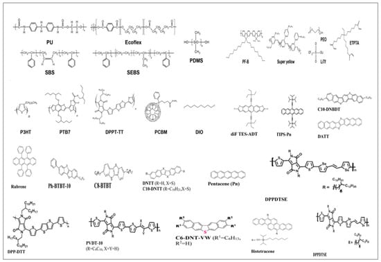 Figure 4. Structural representation of conjugated polymers and molecules in optoelectronic applications.