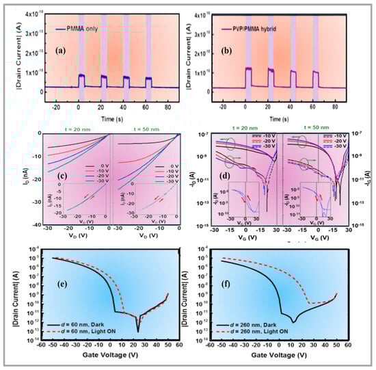130. Park, H.-L.; Kim, M.-H.; Kim, H. Enhanced Optical Switching Characteristics of Organic Phototransistor by Adopting Photo-Responsive Polymer in Hybrid Gate-Insulator Configuration. Polymers 2020, 12, 527. [Google Scholar] [CrossRef]