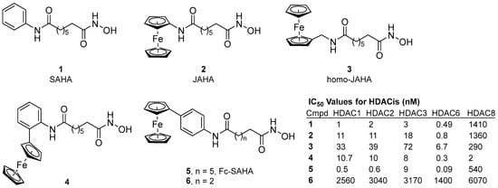 Chicago/Turabian StyleAngelova, Rostislava, and Georgi Stavrakov. 2025. "Ferrocene Derivatives as Histone Deacetylase Inhibitors: Synthesis and Biological Evaluation" Organics 6, no. 1: 4. https://doi.org/10.3390/org6010004