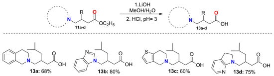 2.6. General Procedure for the Synthesis of the Pregabalin Analogs 13a–d