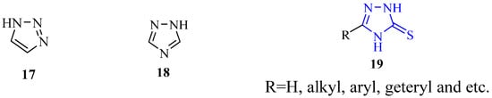 Structures of 1,2,3-(17), 1,2,4-(18), and 5-substitued-2,4-dihydro-1,2,4-triazole-3-thiones (19).