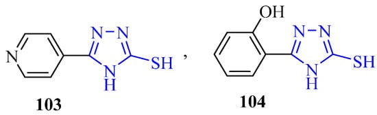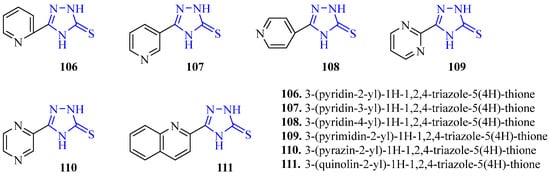 - Aly, A.A.; Hassan, A.A.; Makhlouf, M.M.; Bräse, S. Chemistry and Biological Activities of 1,2,4-Triazolethiones—Antiviral and Anti-Infective Drugs. Molecules 2020, 25, 3036. [Google Scholar] [CrossRef]