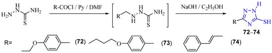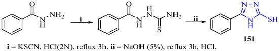 Hoggart E. proposed a classical method [50] on the basis of the heterocyclization of substituted thiosemicarbazides in alcoholic or aqueous alkaline (NaOH, KOH) solutions (Scheme 1b).
