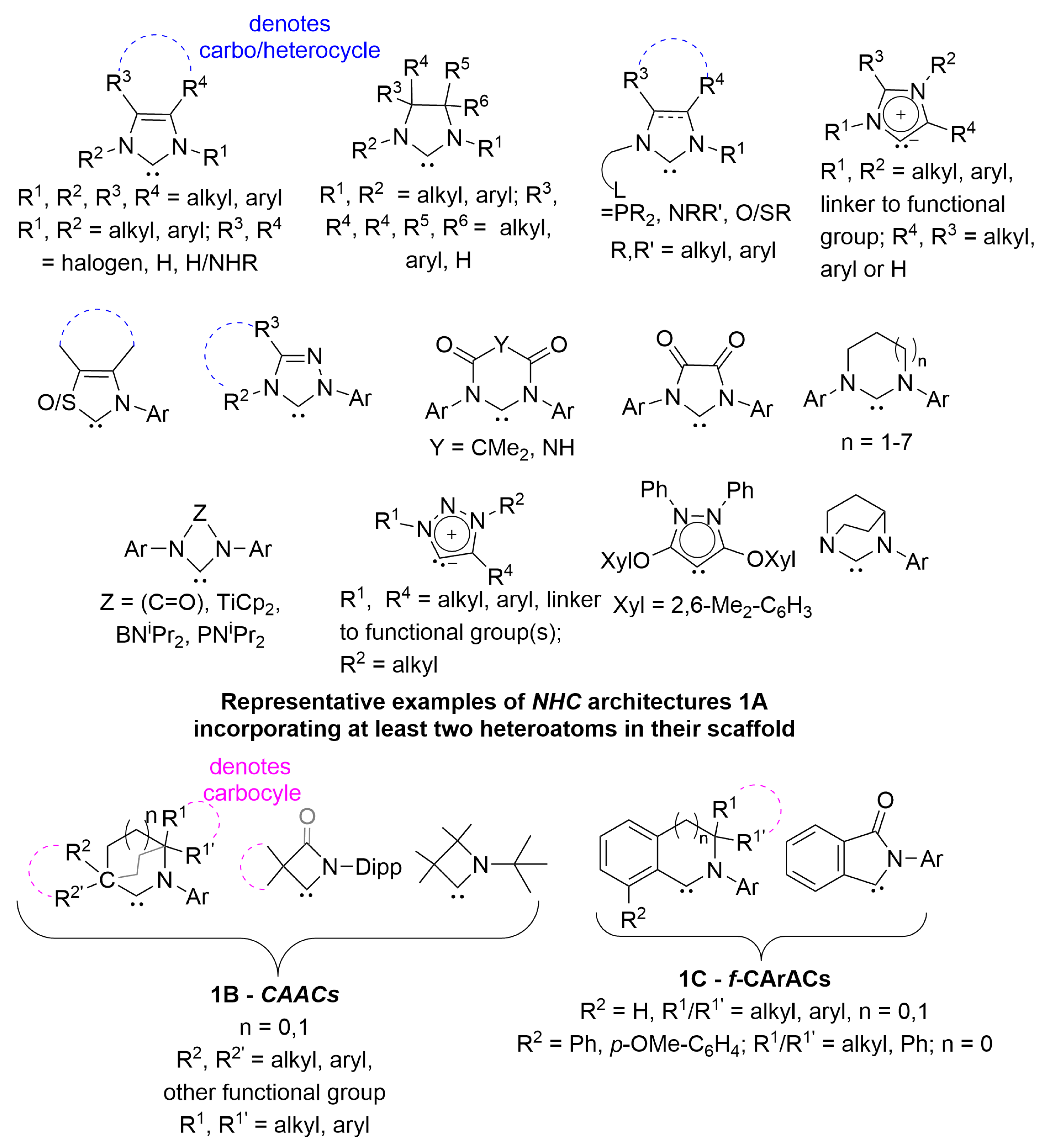 - Kumar Kushvaha, S.; Mishra, A.; Roesky, H.W.; Chandra Mondal, K. Recent Advances in the Domain of Cyclic (Alkyl)(Amino) Carbenes. Chem. Asian. J. 2022, 17, e202101301. [Google Scholar] [CrossRef]