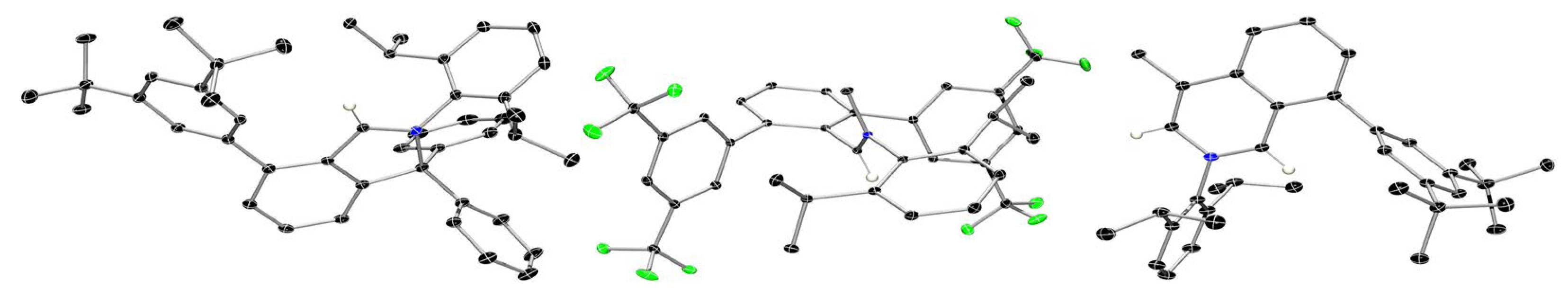 - Tanaka, M.; Kamiyama, S.; Ishii, A.; Nakata, N. 2-[2,6-Diisopropylphenyl]-4-Phenyl-5H-5,9b[1′,2′]-Benzonaphtho[1,2-b]Pyrrol-2-Ium Tetrafluoroborate. Molbank 2023, 2023, M1601. [Google Scholar] [CrossRef]