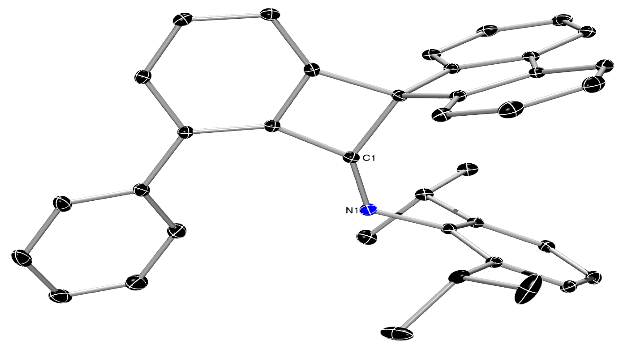 - Karl, L.; Meisner, J.; Ganter, C. Investigations on Novel 1,3-Diazetidine Based Four-Membered N-Heterocyclic Carbenes. Eur. J. Inorg. Chem. 2023, 26, e202300022. [Google Scholar] [CrossRef]