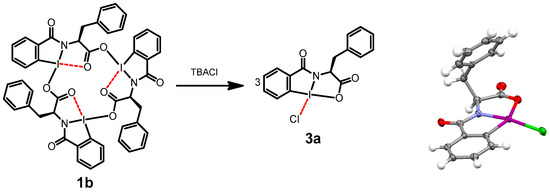 Our group synthesized amino acid-based hypervalent iodine macrocycles (HIMs) [11] 1a and 1b and confirmed the structure by NMR spectroscopy, mass spectrometry and X-ray crystallography (Figure 1) [12,13,14]. Upon the addition of tetra butyl ammonium (TBA) salts of fluoride, chloride, bromide, azide and cyanide to an HIM, the anion selectively bound to the iodine center, resulting in the disassembly of the HIM trimer into a distinct HIM monomer (Figure 2). This new species was identified as a tetracoordinated HIM monomer, where iodine bound to the anion via an iodine–halogen bond. The formation of the monomer upon the addition of TBA(Cl) was further confirmed by obtaining the single crystal that was solved using X-ray diffraction (Figure 2) [12]. From the X-ray analysis, we observed one adduct per tetrabutylammonium cation.