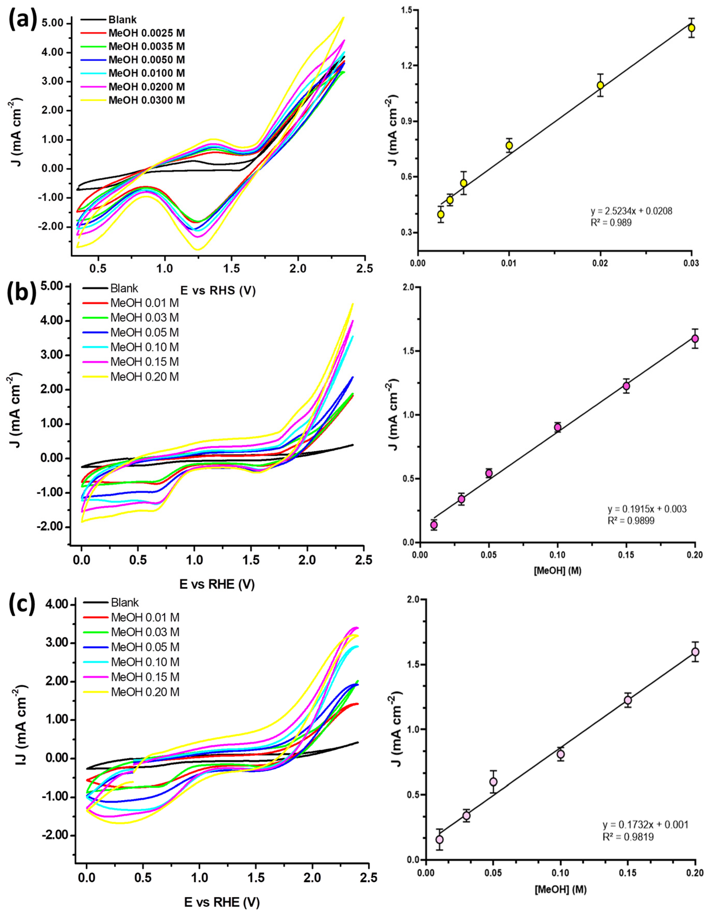 - Hua, X. Electrocatalytic Oxidation of Methanol on NiMnsalpnY Modified Glassy Carbon Electrode. Int. J. Electrochem. Sci. 2019, 14, 8141–8160. [Google Scholar] [CrossRef]