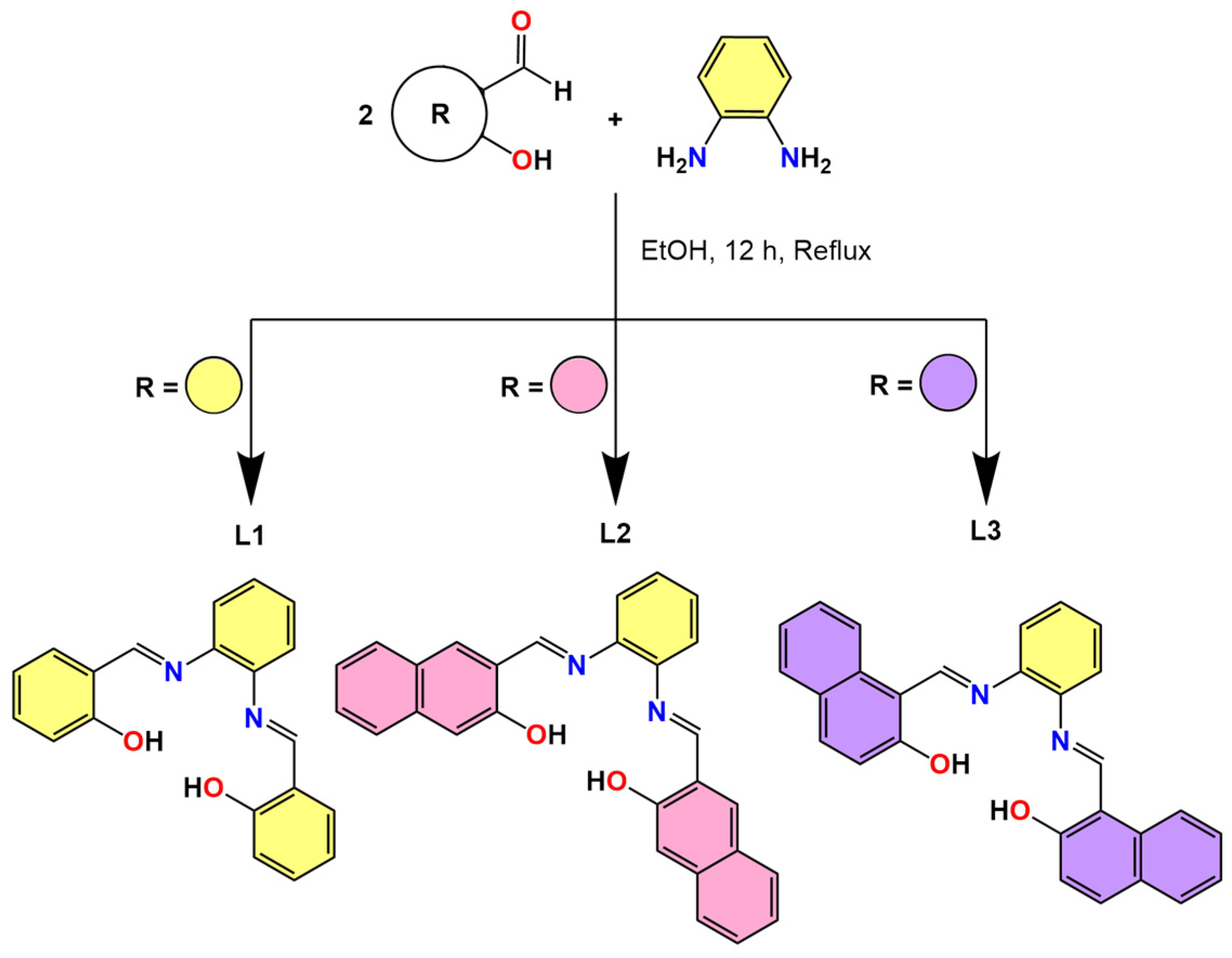 2.2.1. Synthesis of Ligands (L1–L3)