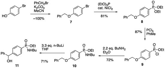 2.3.3. Ethyl P-(4-Benzyloxyphenyl)-N-butylphosphonamidate 10