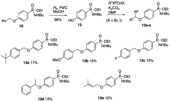 2.5.1. Ethyl N-Butyl-P-(4-(4-tert-butylbenzyloxy)phenyl)phosphonamidate 13a