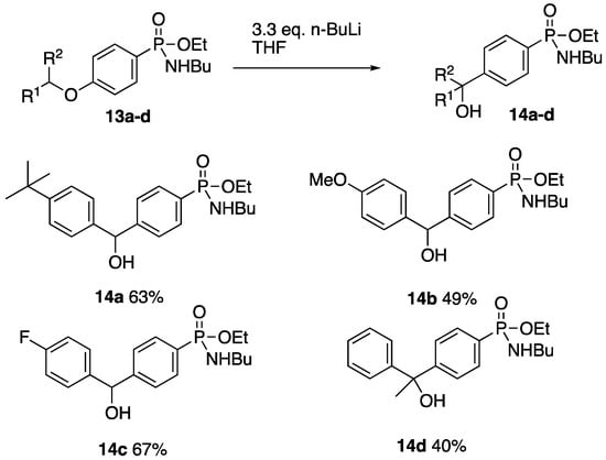 2.6.1. Ethyl N-Butyl-P-(4-(4-(tert-butylphenyl(hydroxy)methyl)phenyl)phosphonamidate 14a