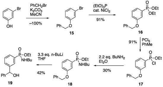 2.8. Synthesis and Rearrangement of Ethyl P-(3-Benzyloxy)phenyl)-N-butylphosphonamidate 18