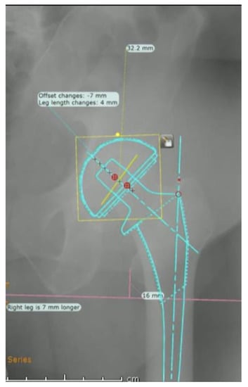 - Zhao, X.; Zhu, Z.; Zhao, J.; Li, M.; Wang, G.; Yu, D.; Yu, B. The utility of digital templating in Total Hip Arthroplasty with Crowe type II and III dysplastic hips. Int. Orthop. 2010, 35, 631–638. [Google Scholar] [CrossRef] [PubMed]