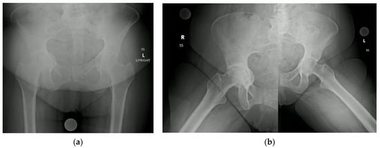 - Clohisy, J.; Carlisle, J.; Trousdale, R.; Kim, Y.; Beaule, P.; Morgan, P.; Steger-May, K.; Schoenecker, P.; Millis, M. Radiographic Evaluation of the Hip has Limited Reliability. Clin. Orthop. Relat. Res. 2008, 467, 666–675. [Google Scholar] [CrossRef]