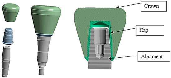 Finite element model of the abutment–cap–crown system.