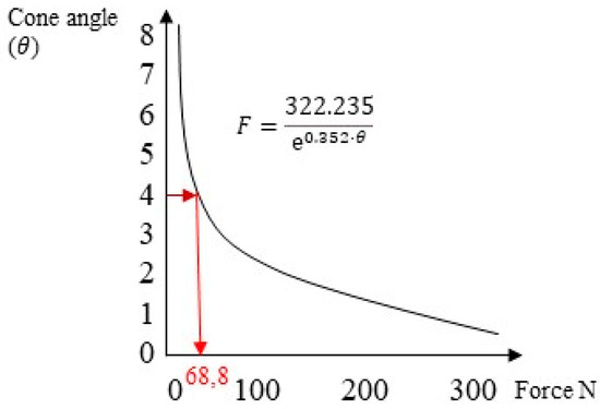 The second method used was an experimental approach proposed by Antonaya-Martin et al. [26], where a graph obtained using in vitro tests was employed to calculate the system’s retention, knowing only the abutment’s conicity (Figure 8).