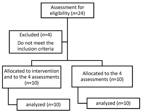 This study is a pilot, approved by the Australian New Zealand Clinical Trials Registry (ANZCTR) with number ACTRN12617001170314, pre-test and post-test evaluation aimed at assessing the implementation of an exercise protocol for older adults classified as pre-frail according to the Clinical Frailty Scale [23]. The study’s purpose was to verify improvements in balance, fear of falls, and frailty syndrome to increase functional independence. Participants were divided into experimental and control groups in a predictive–causal experimental quantitative approach [24].