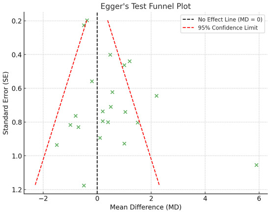 Publication bias was evaluated across the included studies using Egger’s test, a linear regression method applied to the postoperative IMA angle data [20]. The results, depicted in Figure 7’s funnel plot, indicated no significant evidence of publication bias (p = 0.12).