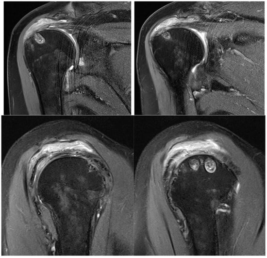 9. Ruiz Ibán, M.; García Navlet, M.; Moros Marco, S.; Diaz Heredia, J.; Hernando Sánchez, A.; Ruiz Díaz, R.; Comino, C.V.; Ojeda, M.L.R.; Bello, G.d.M.; Lafuente, J.L.Á. Augmentation of a Transosseous-Equivalent Repair in Posterosuperior Nonacute Rotator Cuff Tears With a Bioinductive Collagen Implant Decreases the Retear Rate at 1 Year: A Randomized Controlled Trial. Arthroscopy 2024, 40, 1760–1773. [Google Scholar] [CrossRef] [PubMed]