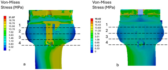 | Sections | von Mises Stress (MPa) Model A | von Mises Stress (MPa) Model B |