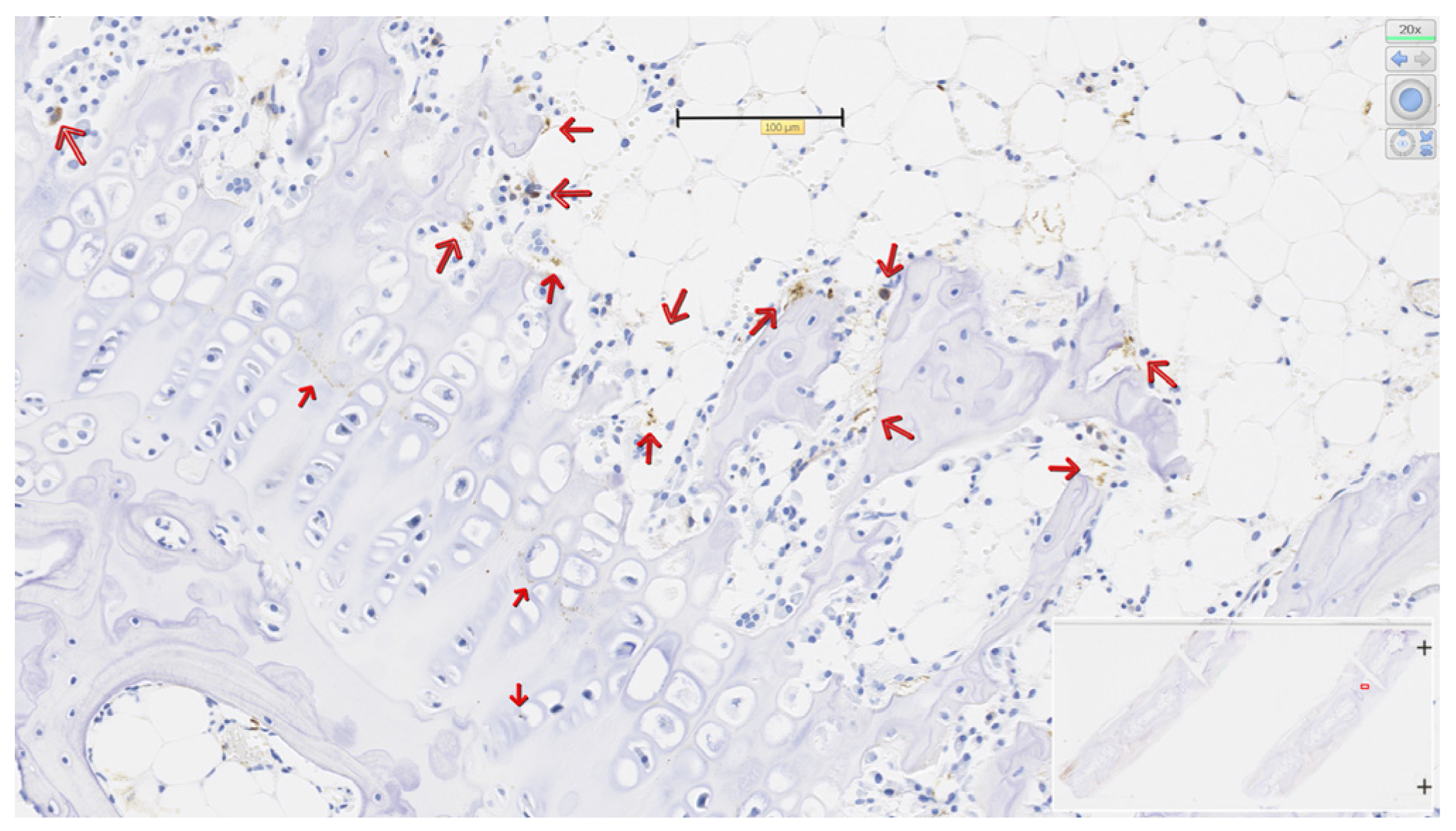- Roach, H.I.; Mehta, G.; Oreffo, R.O.; Clarke, N.M.; Cooper, C. Temporal analysis of rat growth plates: Cessation of growth with age despite presence of a physis. J. Histochem. Cytochem. 2003, 51, 373–383. [Google Scholar] [CrossRef]