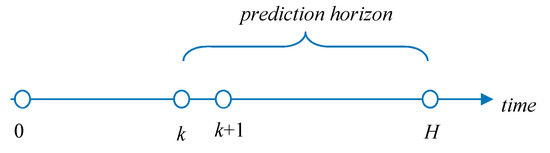 The prediction horizon can have different positions inside the control horizon [0, H] (see [11]). Figure 1 shows the situation when the prediction horizon includes the final moment H of the control horizon. Accordingly, the prediction horizon’s length is variable, having the value h = H − k, where k is the current sampling time. Because k evolves from 0 to H−1, it holds