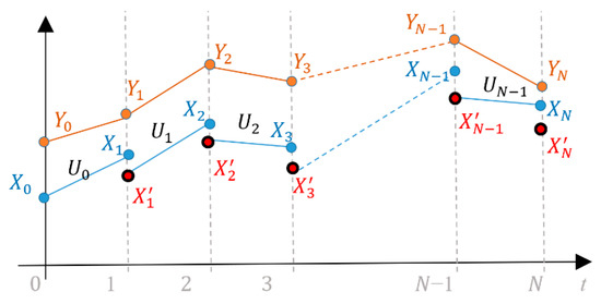 The control horizon is [t0, tN], with discrete moments ti = t0 + i·T, I = 0,…, N, where T is the sampling period, and t0 is the initial moment (t0 = 0). If the initial value X0 = X(t0) and the sequence of control inputs