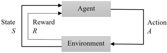 Reinforcement Learning is one of the three ML paradigms, along with Supervised Learning and Unsupervised Learning. In RL, the learning process occurs in the interaction of the agent with the environment via reward signals. The basic setup includes the agent being trained, the environment, the possible actions the agent can take and the reward the agent receives [13]. The reward can be associated with the action taken or with the new state. Figure 1 illustrates the principle of RL, in which an agent interacts with the environment through an action A, causes its state S to change (or not), and receives a reward R that depends on the action and state.