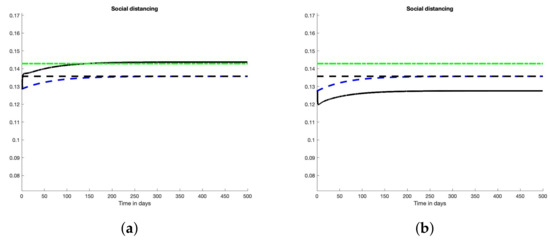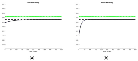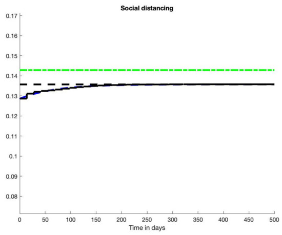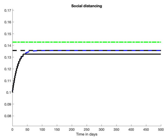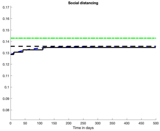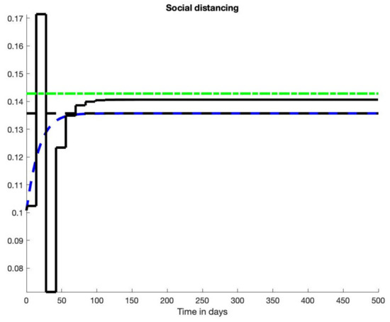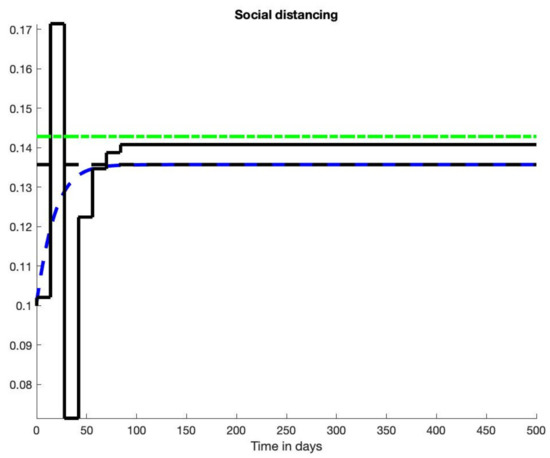 A naïve application of Section 2.2 leads to a continuous evolution of the control variable , i.e., of the social distancing. This is impossible to implement in real life.