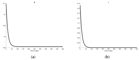 The transmission rate and the recovery/removal rate are positive. Equation (1) yields that is constant. We may set