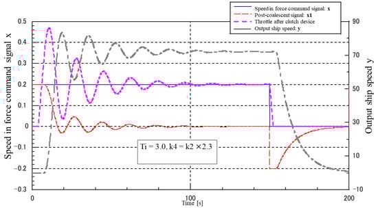 In the fishing vessels for which experimental data were taken, it is difficult to perform automatic control using only a proportional control system. The steady-state deviation becomes too large for a gain that can ensure stability. In addition, even if the engine output is increased relative to the ship’s clutch or the screw is reversed, the proportional gain cannot be increased.