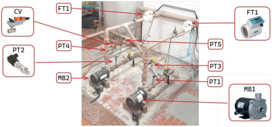 The proposed control aims to maintain stable the pressure at the outlet of the system, represented by the PT-5 sensor in Figure 1. In this system, it is also possible to emulate the variation of the water demand by regulating the opening angle of the control Valve at the outlet of the system.