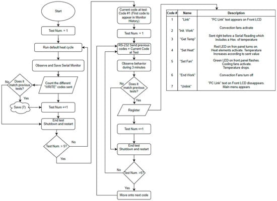 A total of 40 tests were performed, following the methodology in Figure 6 (and utilizing the aforementioned Experimental Setup). This was done to clearly demonstrate that our interpretation of what each command does was correct. After the tests, Table 1, which includes the found Hex Codes, could be generated.