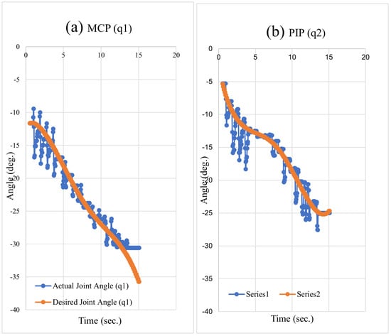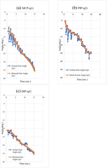 The actual and desired joint angle of (a) MCP, (b) PIP, (c) DIP of experiment-1.