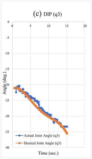The actual and desired joint angle of (a) MCP, (b) PIP, (c) DIP of experiment-2.