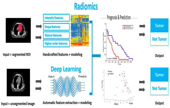 The workflow of radiomics analysis in early tumor diagnosis. The DL model is based on features extracted from the medical images, which capture key characteristics, such as texture, shape, and intensity patterns.