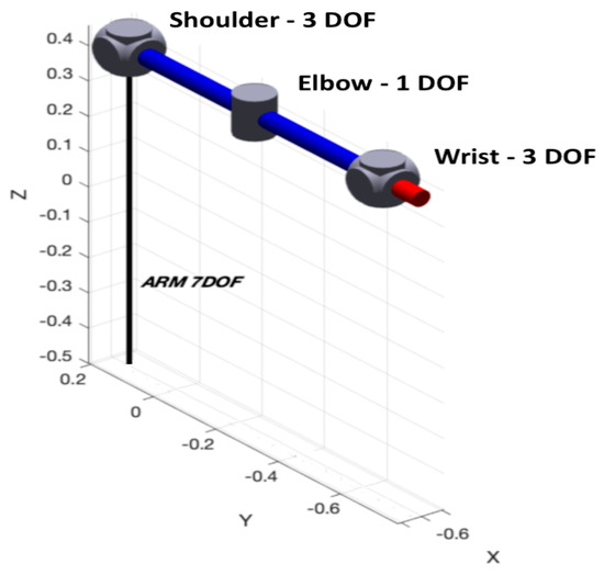 In this step, the human arm and the manipulator in the co-manipulation task are modeled as a CKC, where either the human arm or the manipulator is modeled as a 7-DOF open kinematic chain. The Denavit–Hartenberg (DH) parameters of the human arm are determined based on the anthropometric data of the male 95th percentile. In addition, the human arm motion constraints depend on the ergonomic limitations for the marginal comfort range of joint motions [35]. In the case of the manipulator, the DH parameters and the constraints are determined by the specifications of the robot. This step is discussed in detail in Section 3.