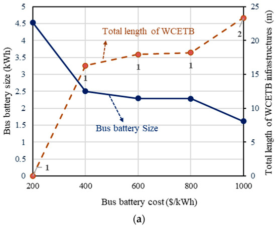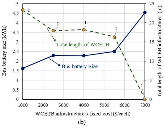 Numerical analysis with (a) various battery sizes and (b) variations in WCETB infrastructure.