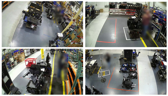 Camera views of the four stations in the production facility. The people in the images are blurred to protect their identity and comply with the request from the industry partner.
