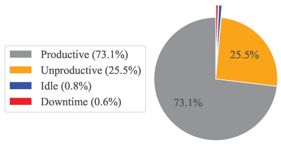 The above definitions can be mathematically combined by representing productivity, non-productivity, downtime, and idle time as , and , respectively: