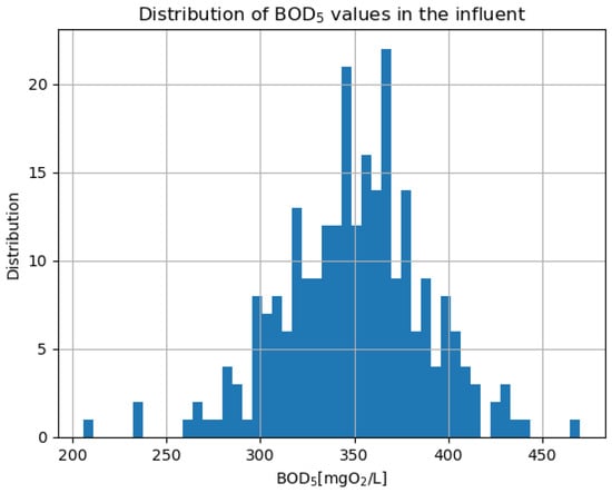 - Ammonium Nitrogen (NH4-N), mg/L—a critical component of wastewater, which, due to its origin, may exhibit certain dependencies with BOD5.