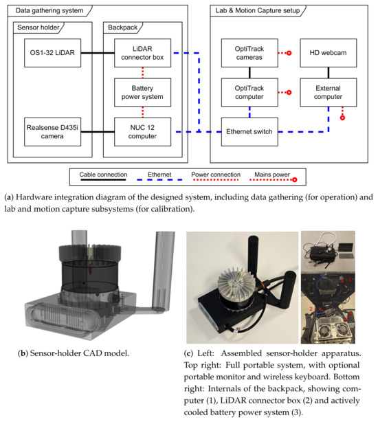 Detailed design overview of our portable data capture system for 3D semantic–geometric mapping.