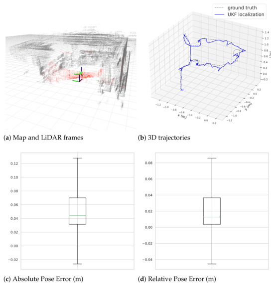 Our proposed pipeline for mapping and localization combines two methods. The first, offline, employs a graph-based SLAM approach to build a reference point cloud map of the environment. The second, online, employs a unscented Kalman filter (UKF) [63]-based approach on top of the reference map to estimate in real time the location of the sensor apparatus.