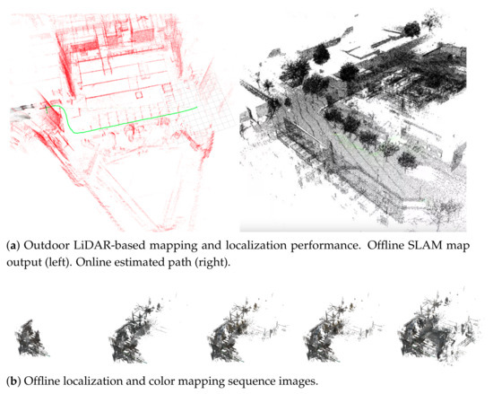 - Debeunne, C.; Vivet, D. A review of visual-LiDAR fusion based simultaneous localization and mapping. Sensors 2020, 20, 2068. [Google Scholar] [CrossRef]