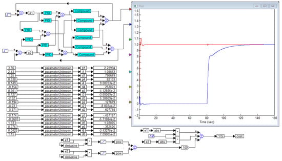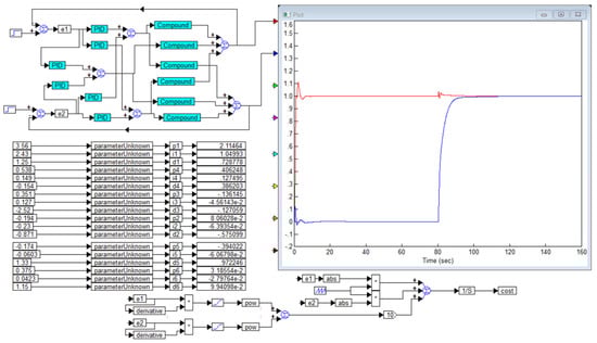 Figure 8 shows the design and the result of controller optimization using the full cost function, into which the square root is additionally introduced according to the following relationship: