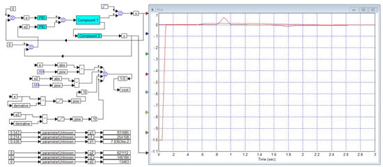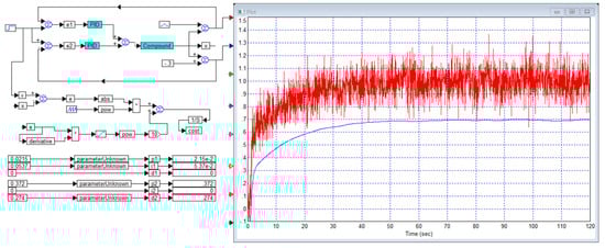 Transfer functions are best suited for describing the mathematical model of a linear object, whereas the mathematical models of nonlinear objects are more adequate in the area of functions in the time domain rather than in the frequency domain. VisSim V5.0e software, which is best suited for the tasks of modeling and optimizing such systems, seamlessly uses both types of these mathematical models together, which facilitates its use for these purposes [,].