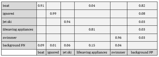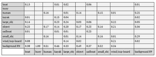 - Confusion matrix, a visualization of classification performance across different object categories, highlighting potential misclassifications (e.g., between rafts and speedboats).