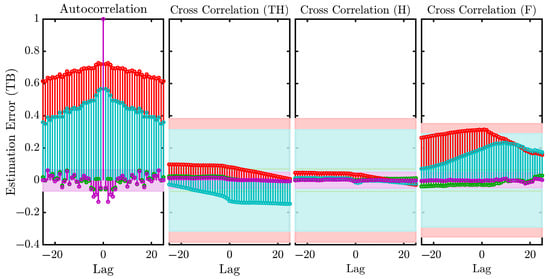 ARMA models are autoregressive models that do not incorporate exogenous inputs, making them well suited for modeling processes based solely on time series data. They include a polynomial component that accounts for the moving average of the noise []. In this particular case, a second-order ARMA model was estimated, resulting in a total of twelve model coefficients.