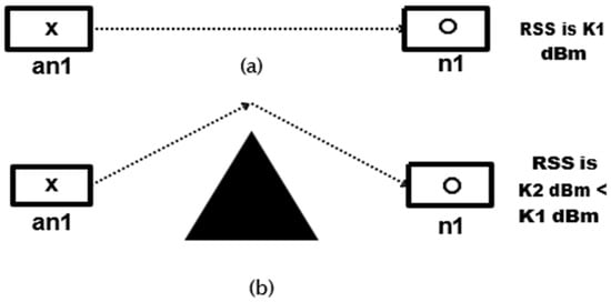 Effect of obstacles on RSS measurements (a) without obstacles (b) with obstacles.